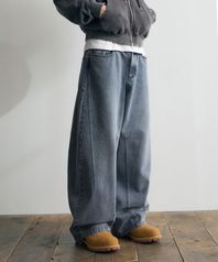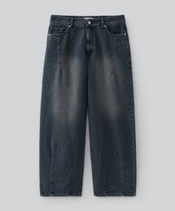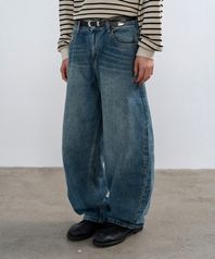 [데일리룸PICK] 배럴핏 커브드 워싱 데님 와이드팬츠_블루