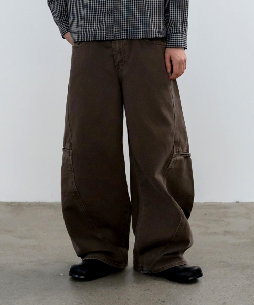 피그먼트 워시드 커브드 와이드팬츠_베이지