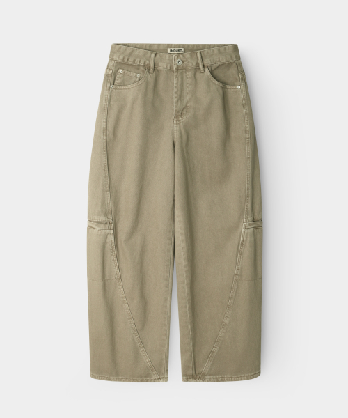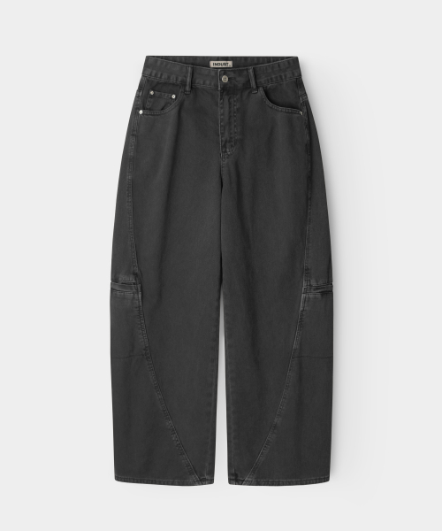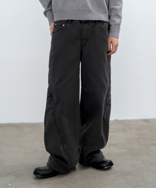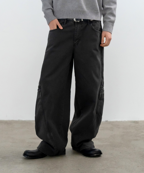 피그먼트 워시드 커브드 와이드팬츠_차콜