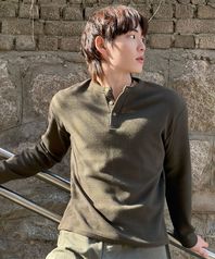 와플 헨리넥 크롭 티셔츠 [카키]