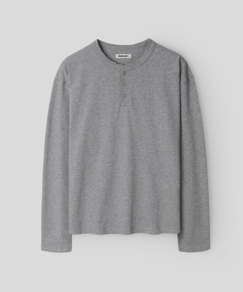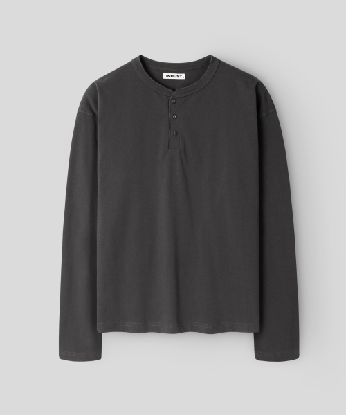 세미크롭 헨리넥 롱슬리브 티셔츠_차콜