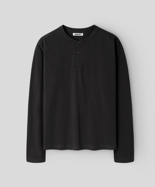 세미크롭 헨리넥 롱슬리브 티셔츠_블랙