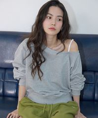 스트랩 오프숄더 스웻셔츠 멜란지 그레이