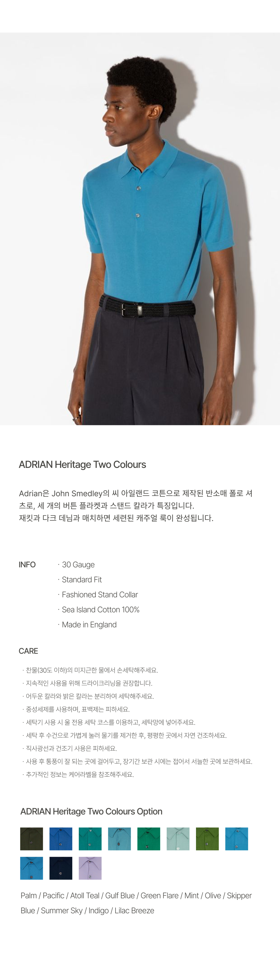 존 스메들리(JOHN SMEDLEY)는 250여 년의 역사를 가진 명품 니트 브랜드로, 전 세계에서 가장 얇은 니트를 선보이며 왕실 인증서를 보유하고 있습니다.
