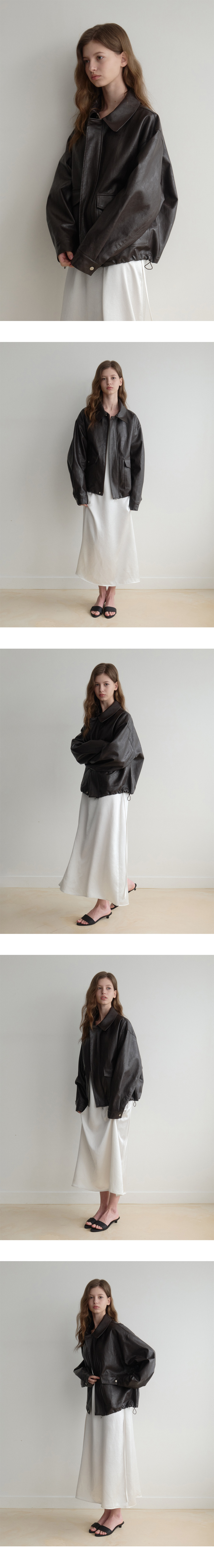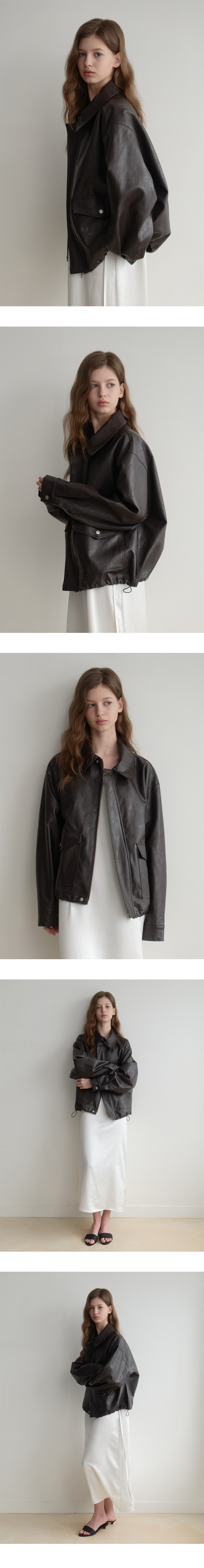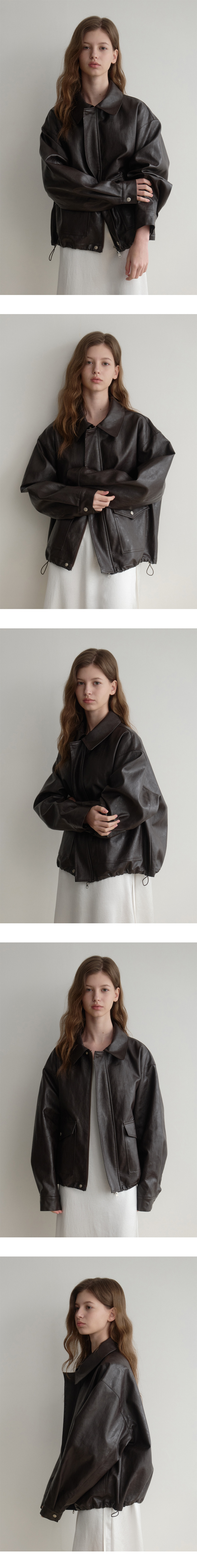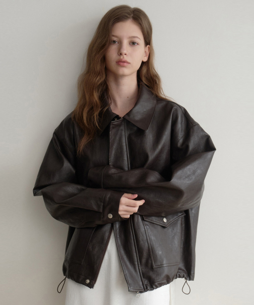 Les 포켓 레더 봄버 블루종(brown)