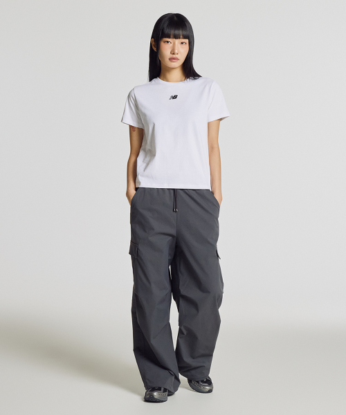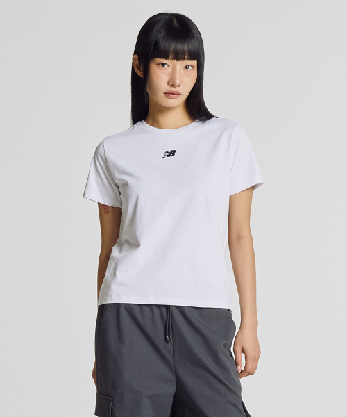 NBNEG2W412 / WOMEN 에센셜 중앙레터 반팔티 (WHITE)