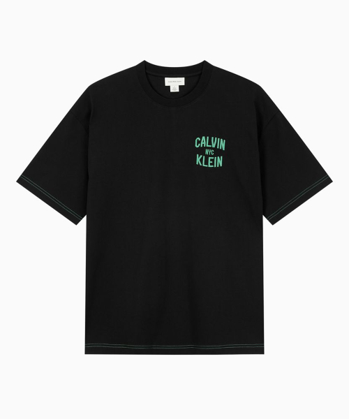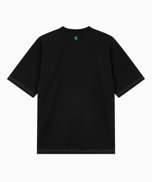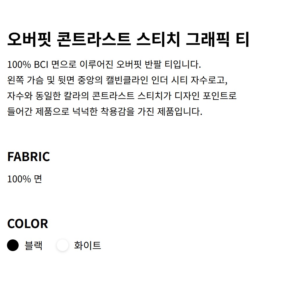 인더시티 오버핏 콘트라스트 스티치 그래픽 티 블랙 4RF296G UB1