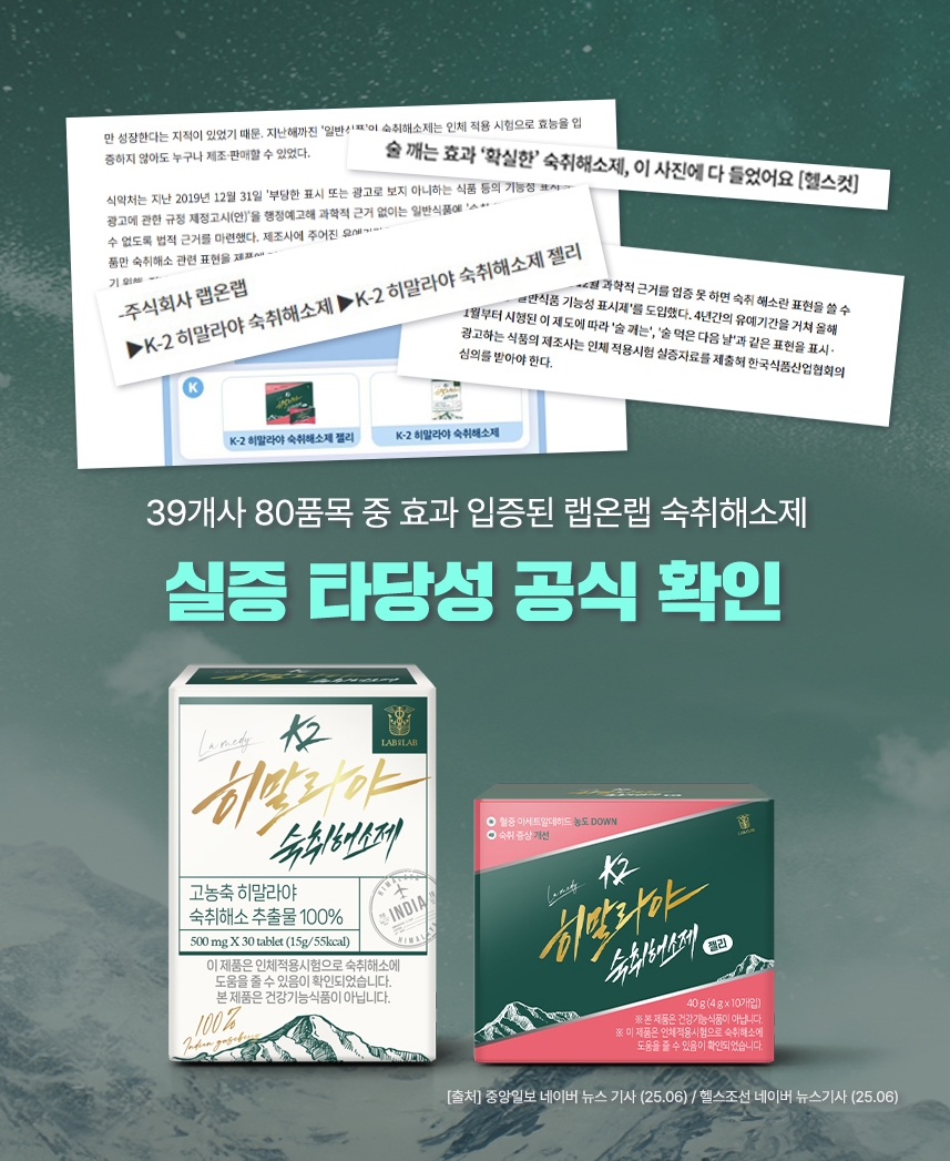랩온랩 고농축 k2 히말라야 숙취해소제 허브 추출물 100% 30정
