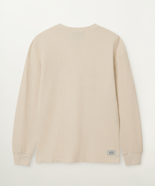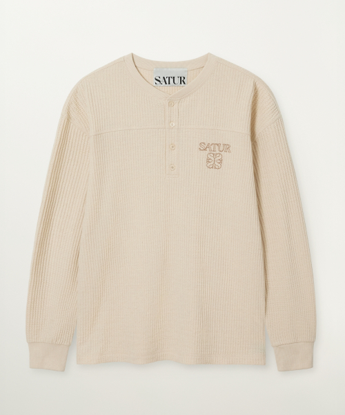 스티치 와플 헨리넥 롱 슬리브 크림