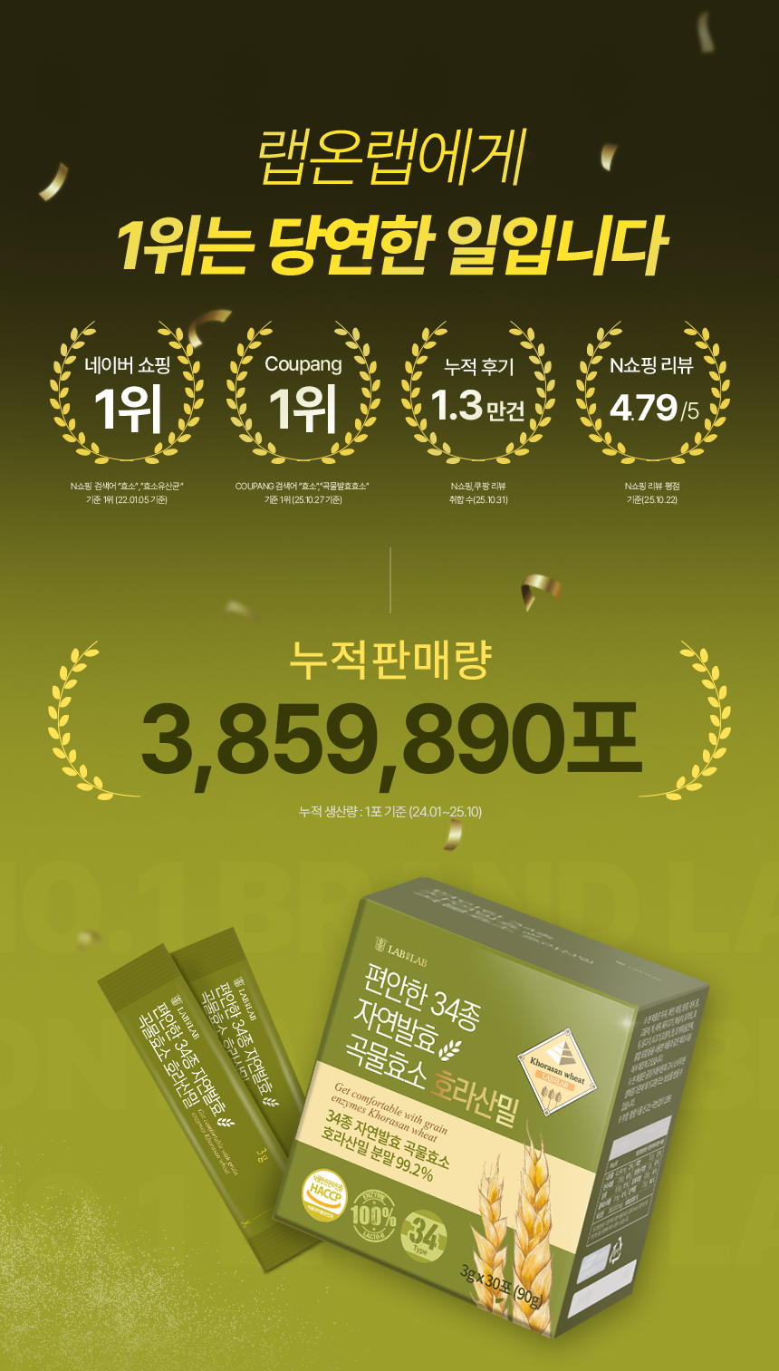 편안한 34종 자연발효 곡물효소 호라산밀 소화 유산균 분말 카무트 30포