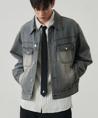 오블리크 브러쉬드 워싱 데님 자켓 [빈티지그레이]