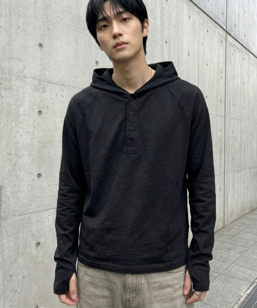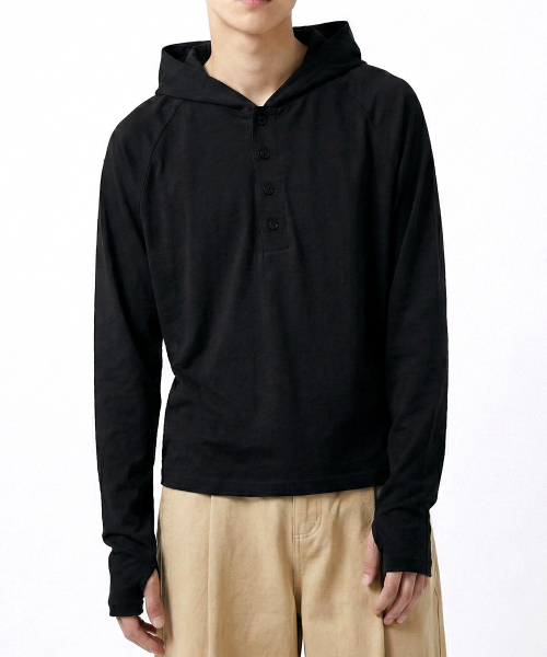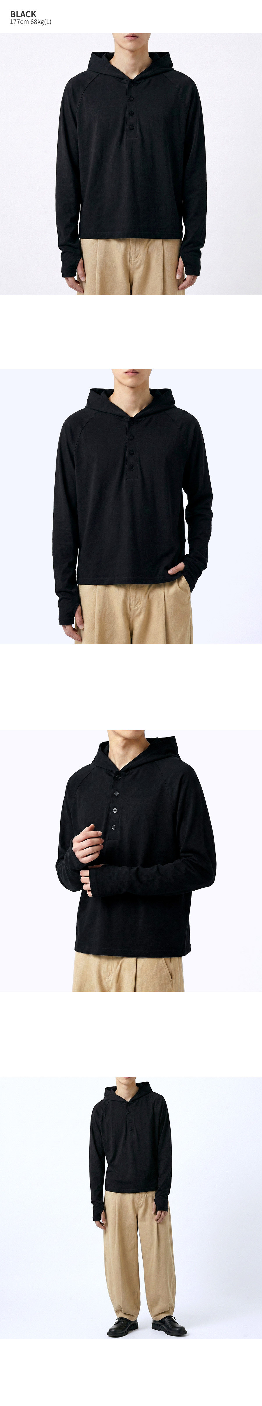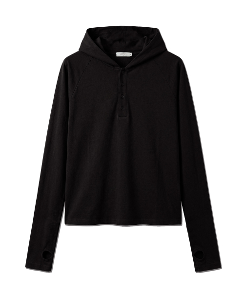 핑거홀 크롭 후드 롱슬리브 멜란지