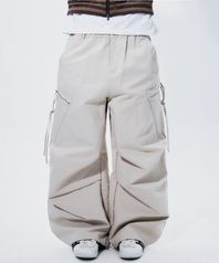플레인 사선 지퍼 포켓 스트랩 파라슈트 와이드 팬츠_2COLOR