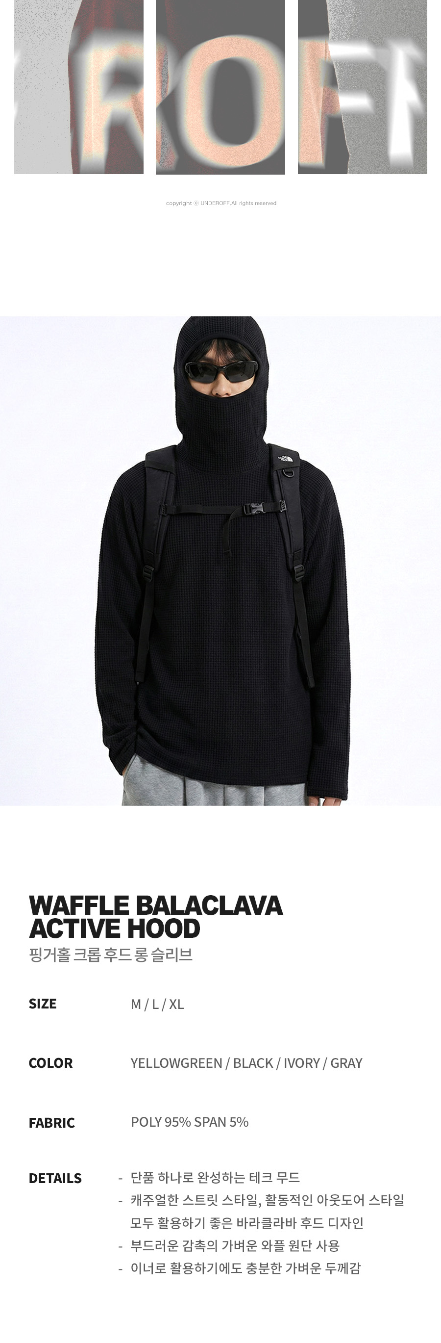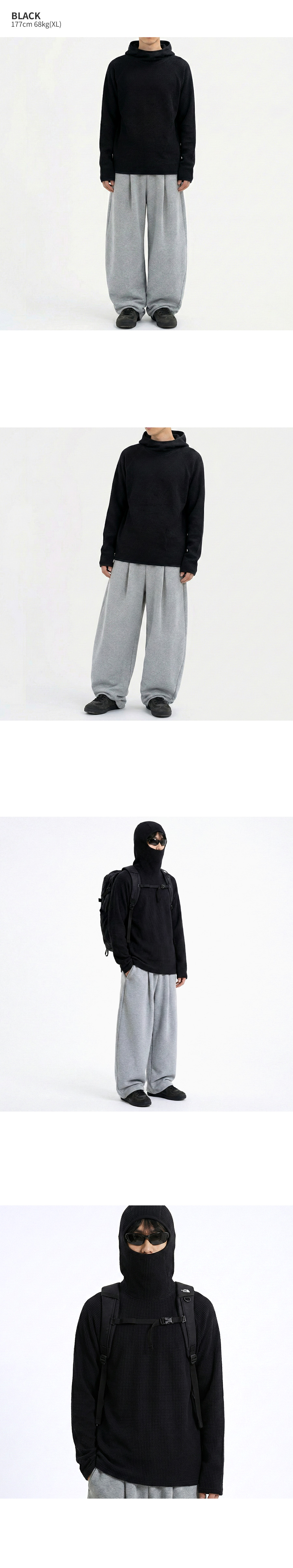 와플 바라클라바 액티브 후드 블랙
