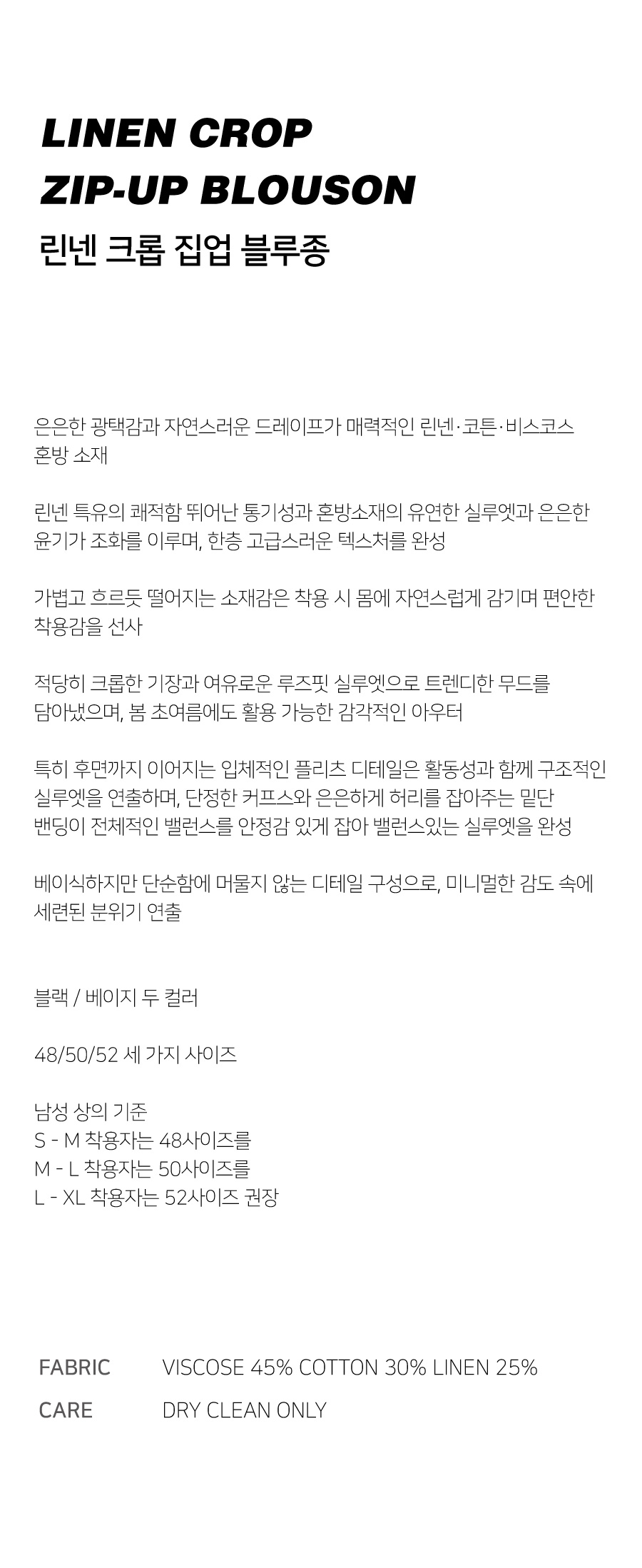 린넨 집업 크롭 블루종 (블랙)
