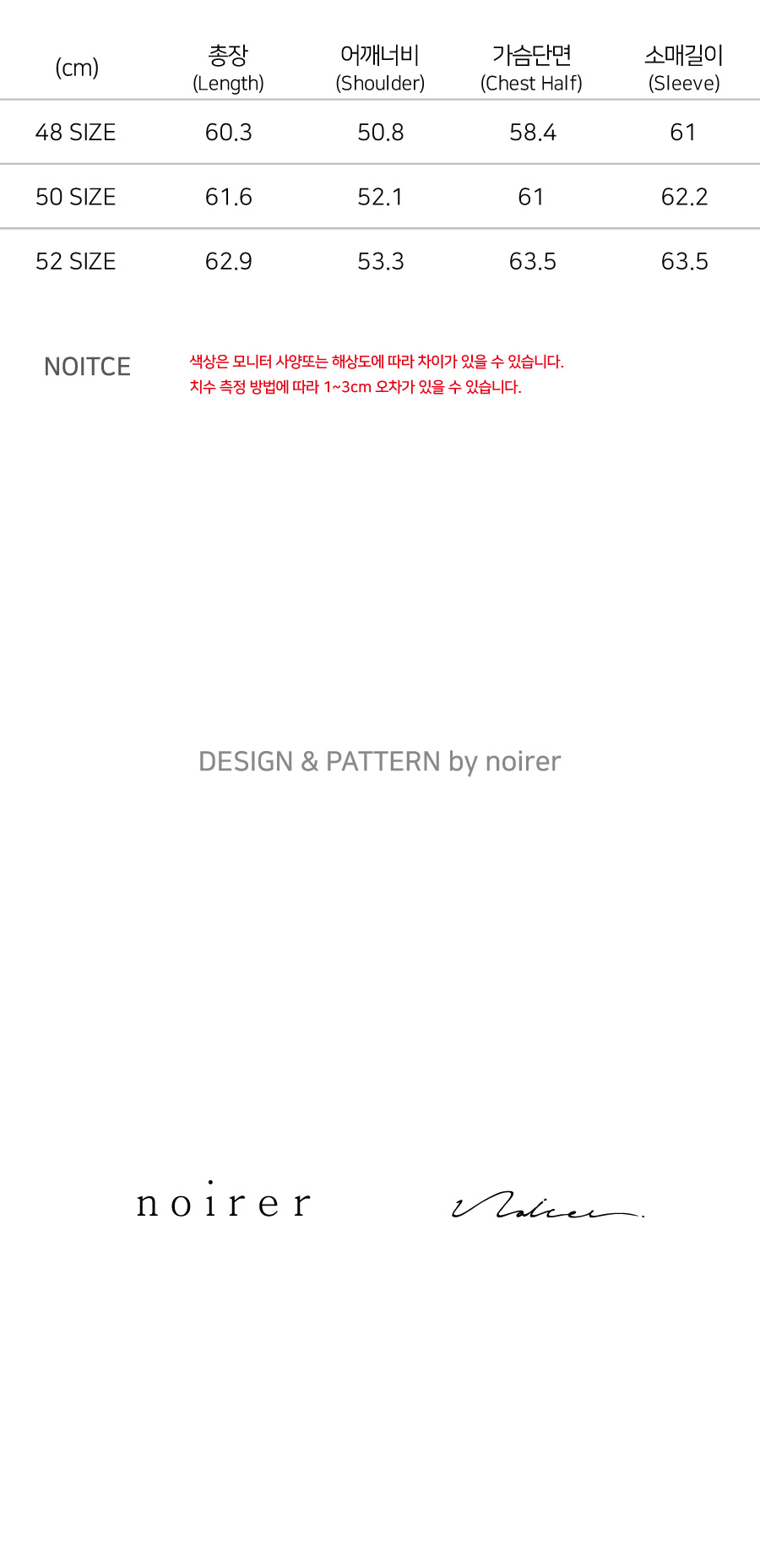 NOIRER(노이어)는 noir + er’로 불어 ‘noir’의 사전적 의미인 ‘농후한, 짙은, 어두운’이란 단어에, 만드는 사람인 ‘-er’을 붙인 합성어로 말 그대로 해석하면 ‘짙은 옷을 만드는 사람’으로 우리에게 옷이란 입는 사람의 철학과 살아온 과거가 그리고 앞으로의 삶에 대한 조용한 의지가 담겨있다.