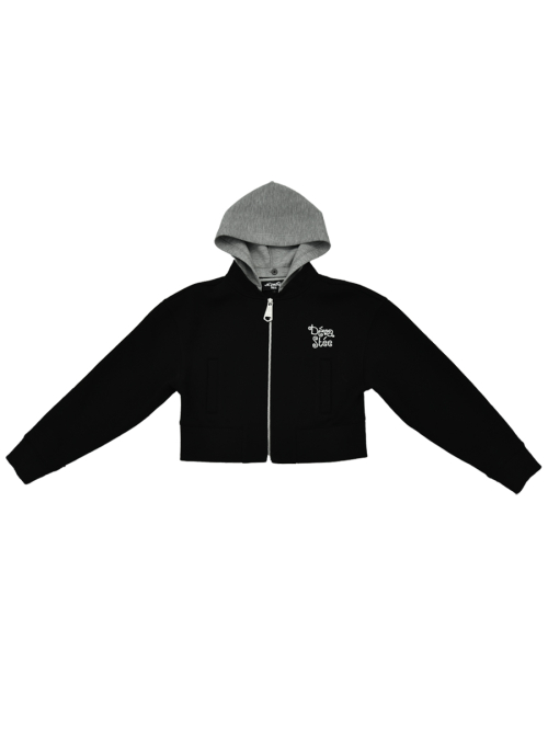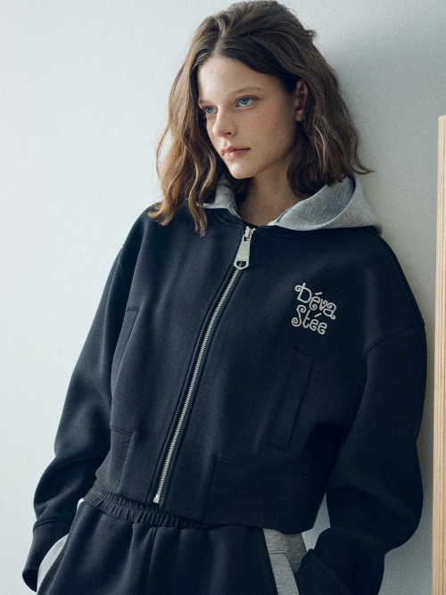 배색 후드 크롭 짚업 ESFDVOW01BLK