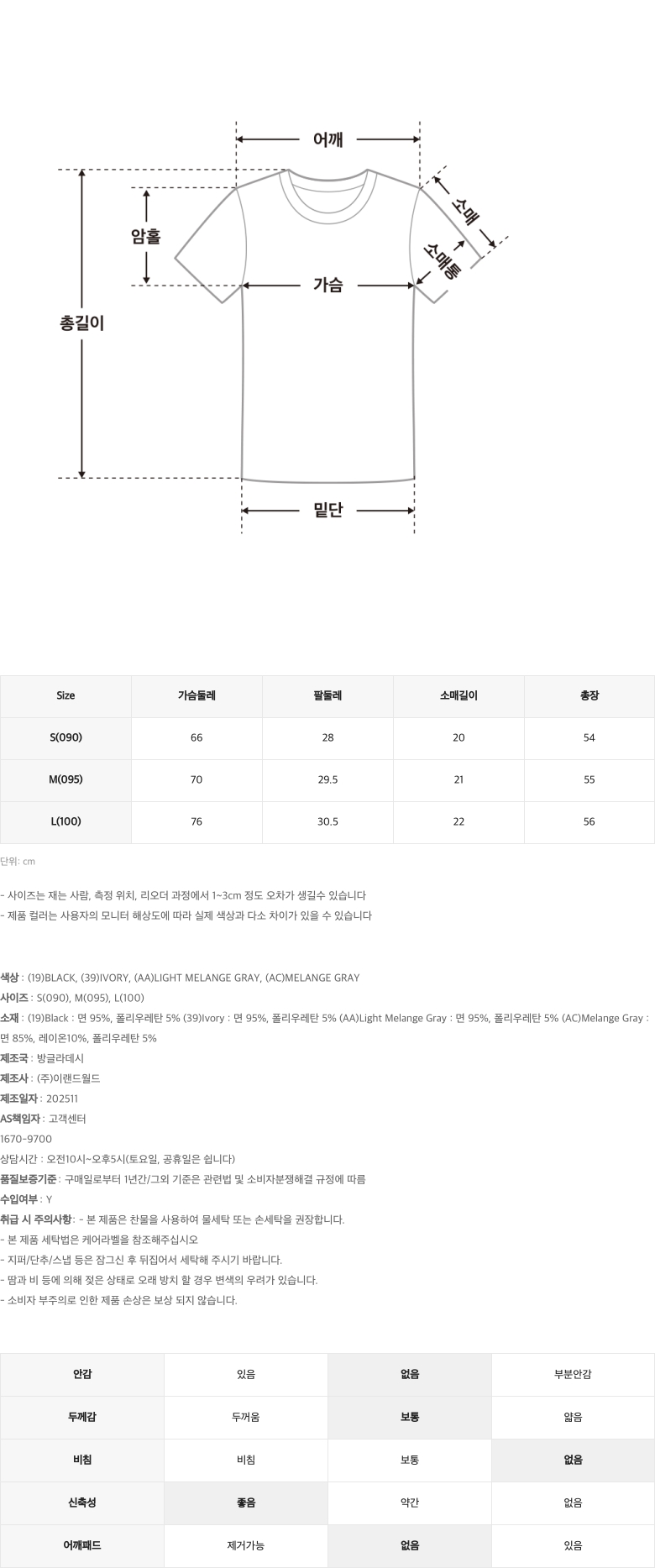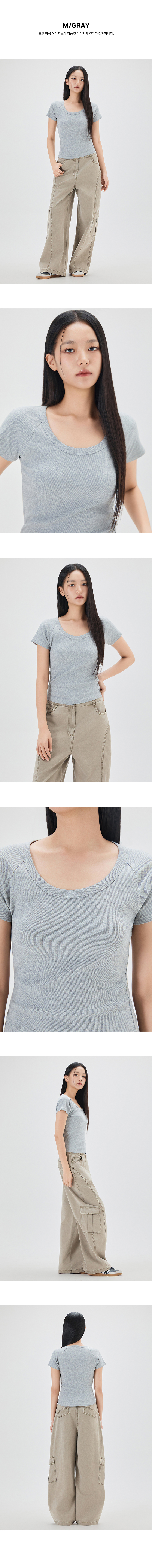 골지 U넥 반팔 티셔츠_MIWHWG410A