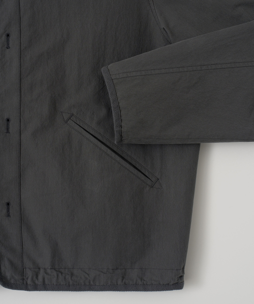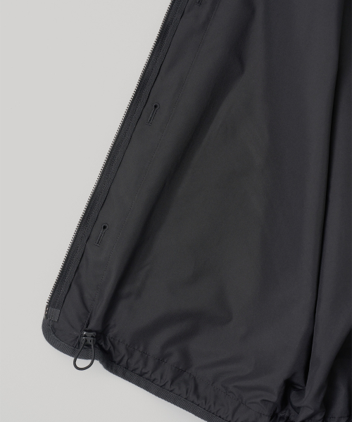 *사선 포켓을 배치하여 수납공간 제공, 밑단 스트링을 조절해 다양한 실루엣 연출