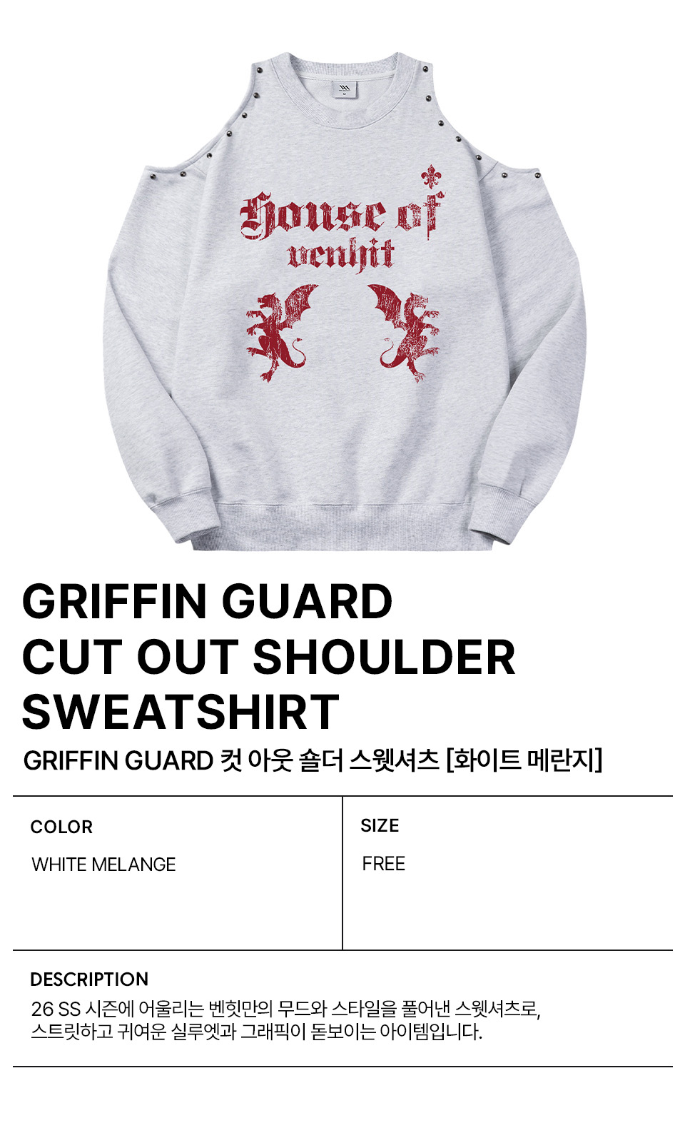 GRIFFIN GUARD 컷아웃 숄더 스웨트셔츠_화이트메란지