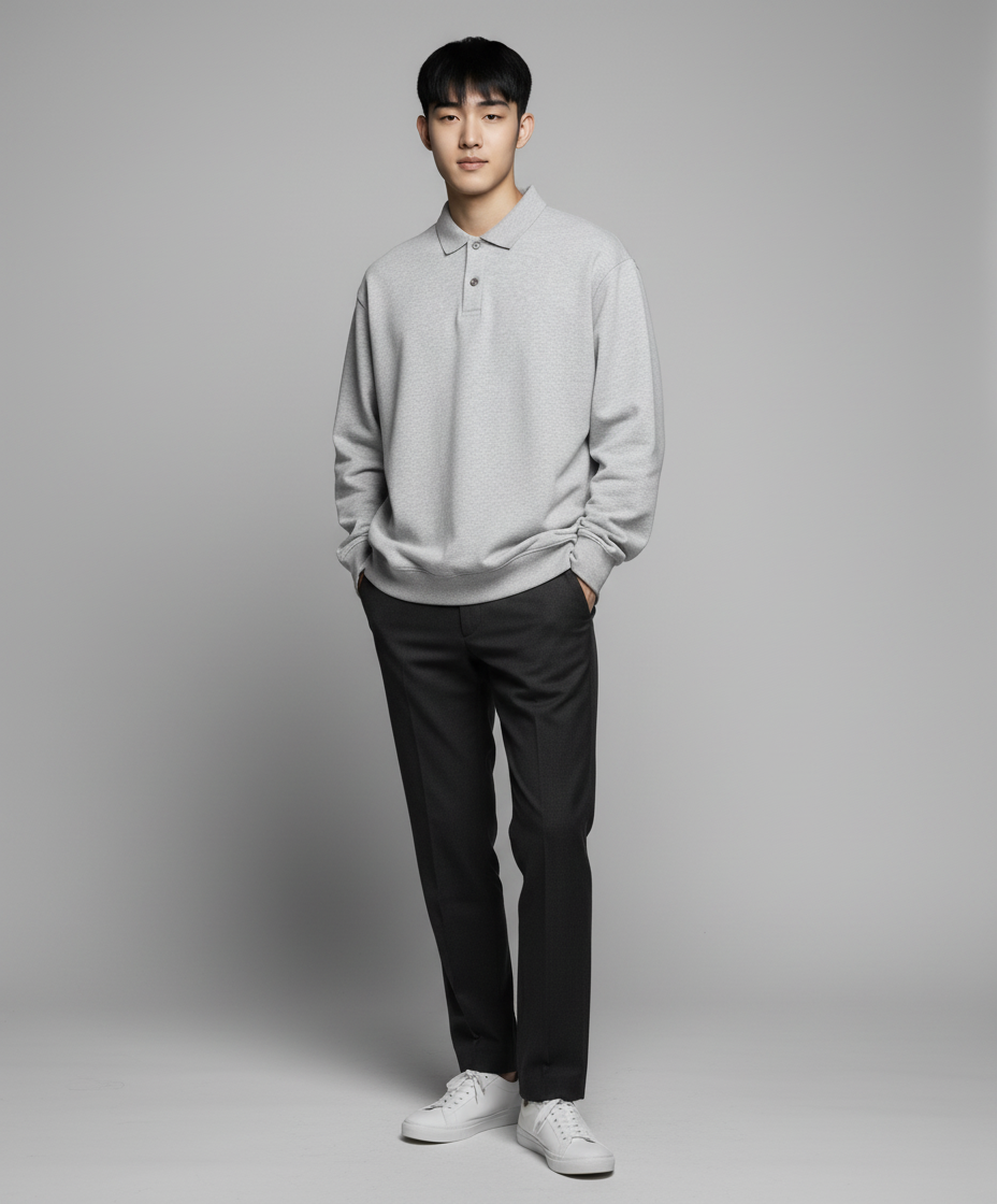 오버사이즈 칼라드 스웨트셔츠 [미디엄 그레이] 2XL