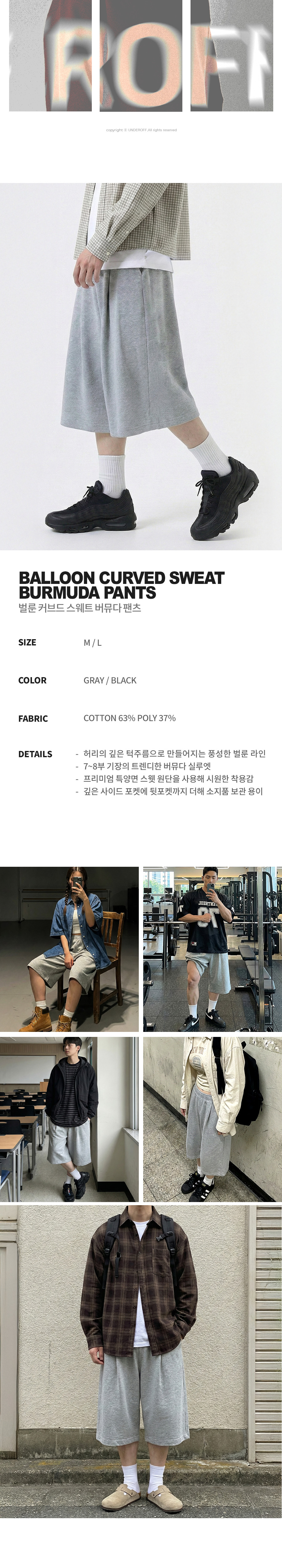 벌룬 커브드 스웨트 버뮤다 팬츠 그레이