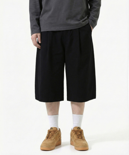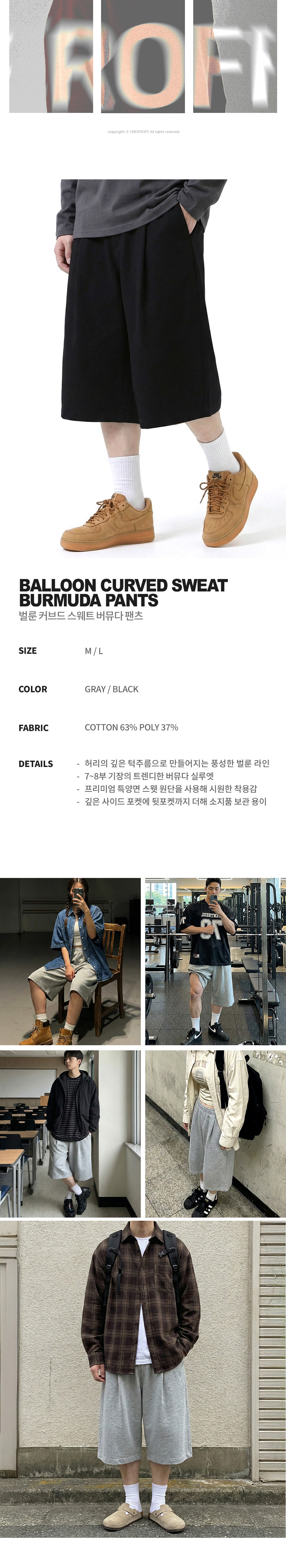 벌룬 커브드 스웨트 버뮤다 팬츠 블랙