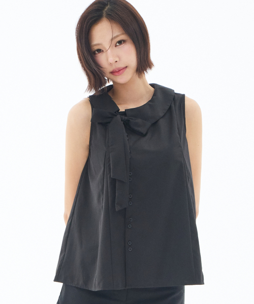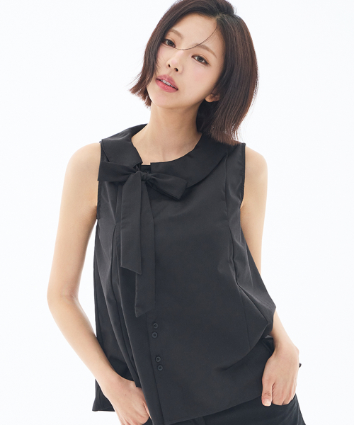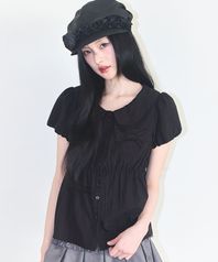 포밍 리본 퍼프 블라우스 블랙