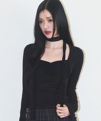 셔링 볼레로 탑 블랙