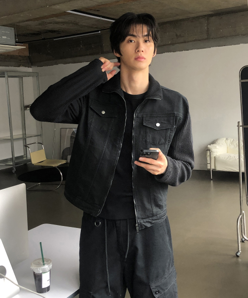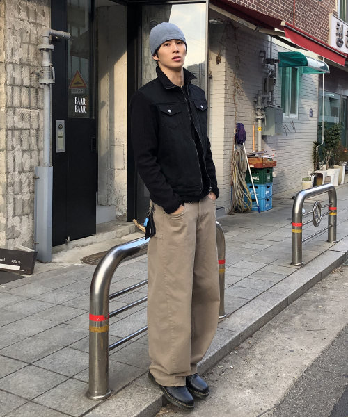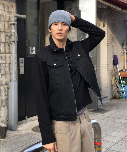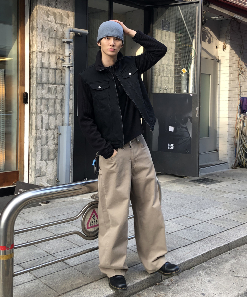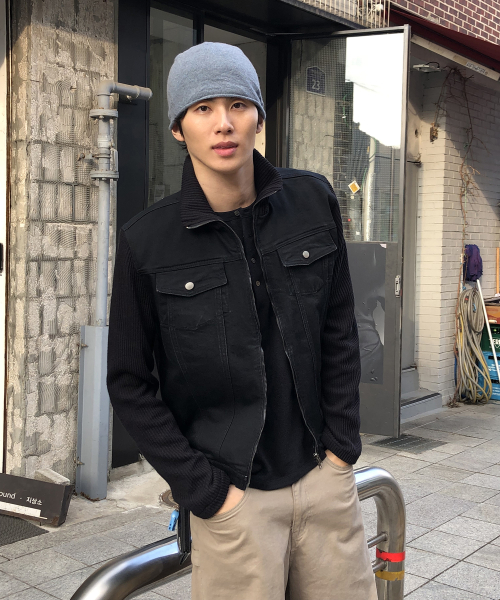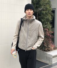 니트 나일론 후드 윈드 브레이커_BEIGE