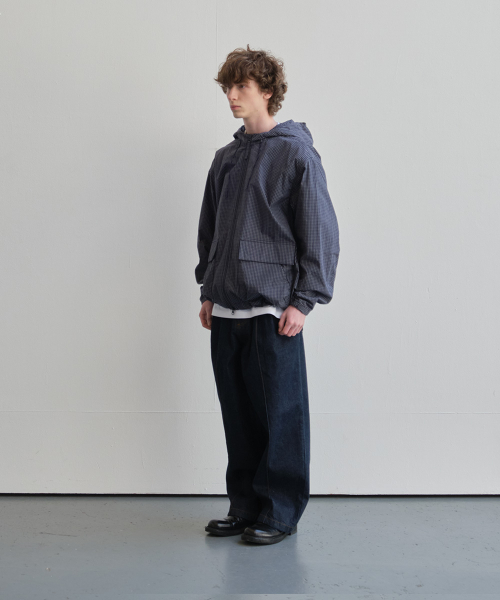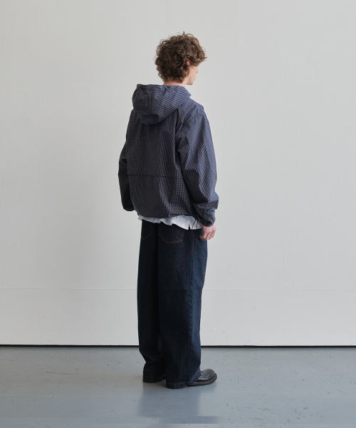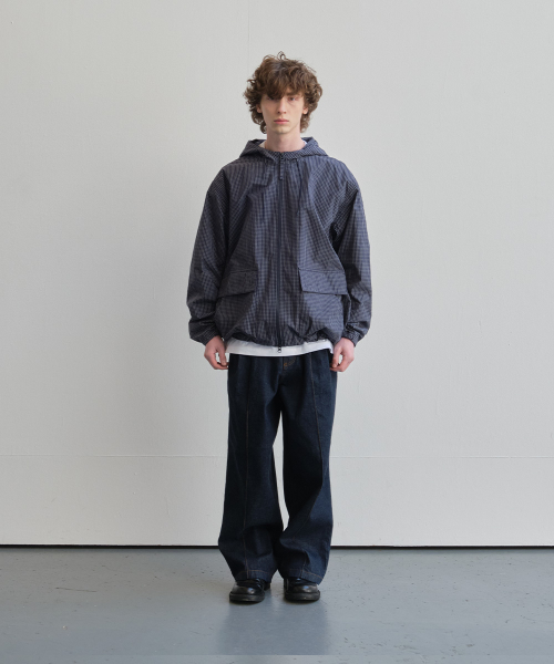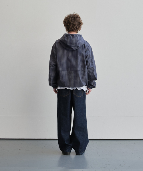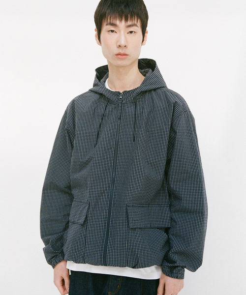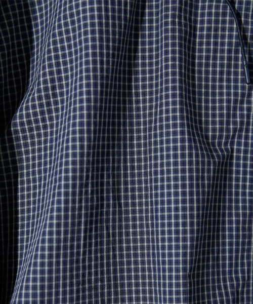 분위기있는 캐쥬얼한 무드가 잘표현된 타이프라이터 조직의 체크 소재사용