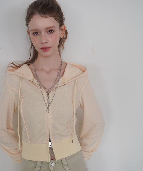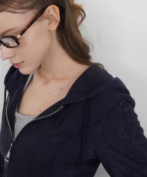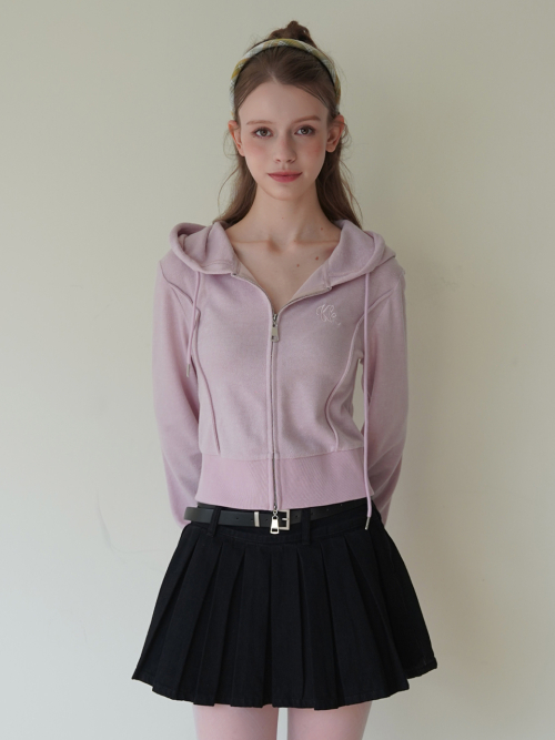 [자수포인트/슬림핏/하이틴/Y2K] 컨투어 집업 후드 탑 3colors