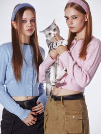 베이직 꽈배기 니트 가디건 (블루)
