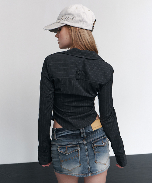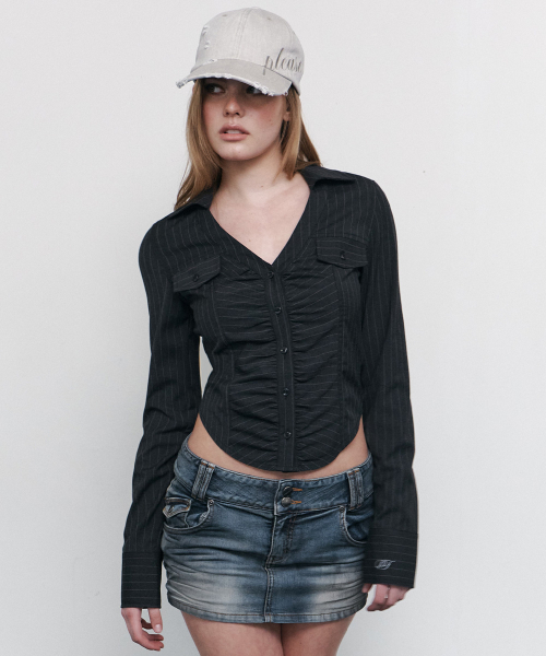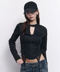 Delphine Shirring Zip up Shirt (Black)