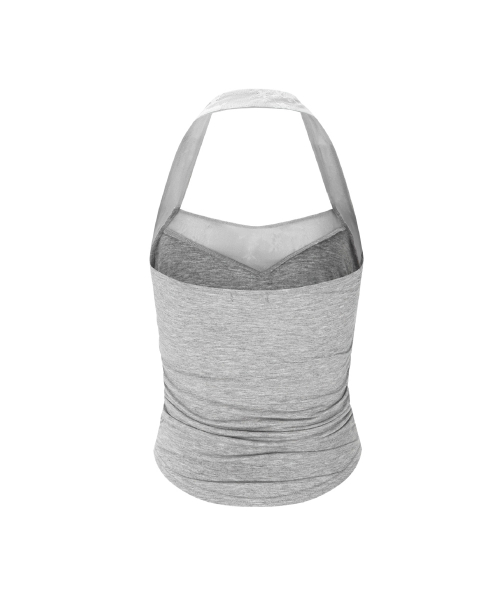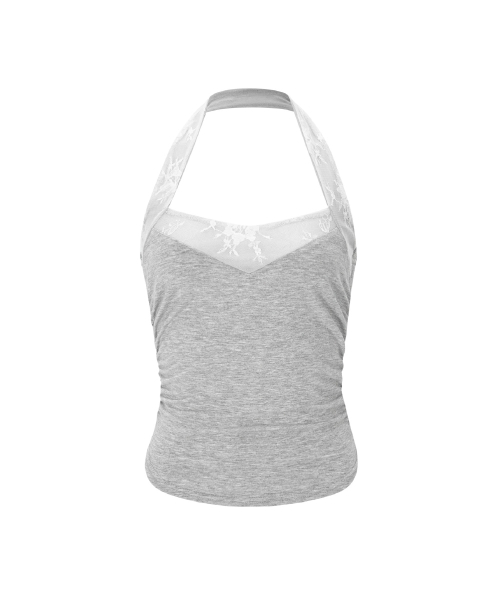 Lua Garter Lace Halter Sleeveless Top (Brown)