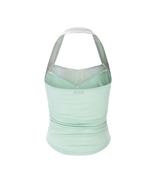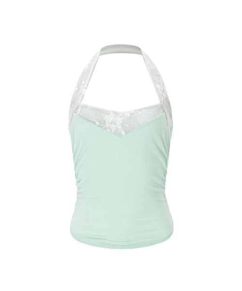 Lua Garter Lace Halter Sleeveless Top (White)