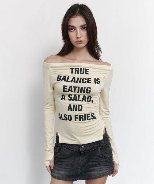 Kacy Lettering Long Off-Shoulder Top (Lemon)