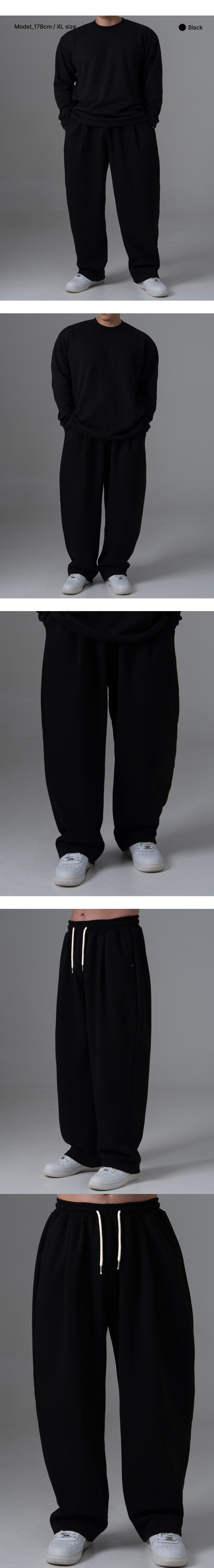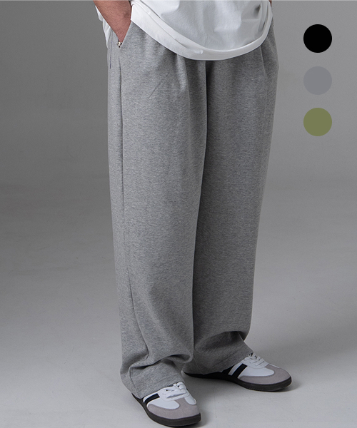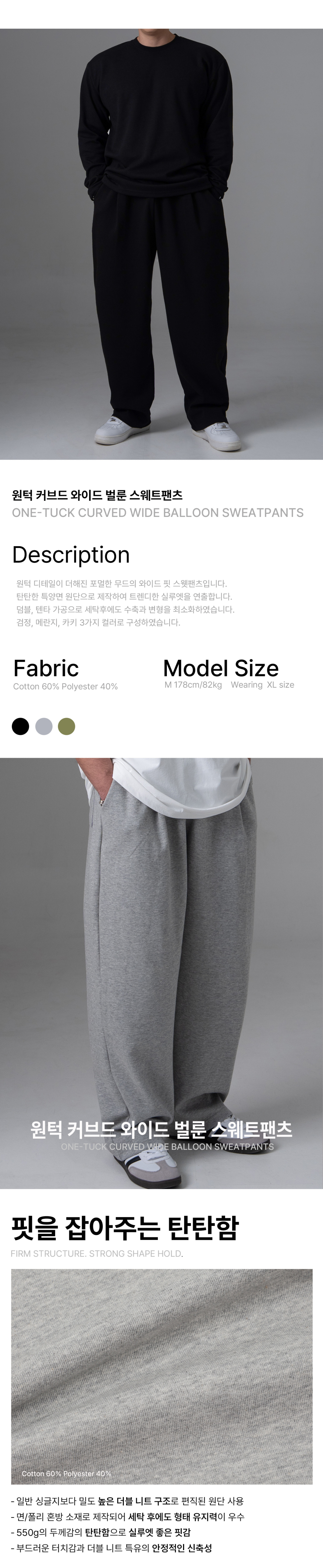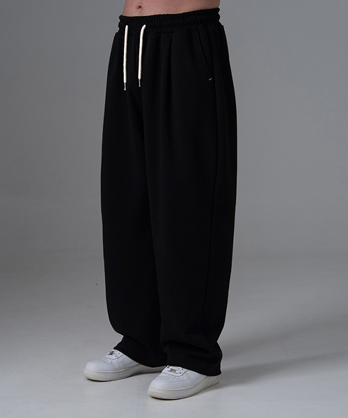 원턱 커브드 와이드 벌룬 스웨트팬츠