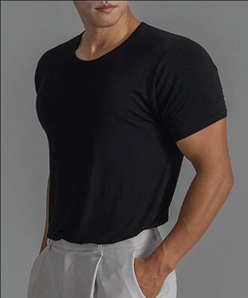 텐셀모달 와이드 U넥 머슬핏 반팔티 (블랙)