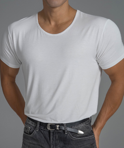 텐셀모달 와이드 U넥 머슬핏 반팔티 (화이트)