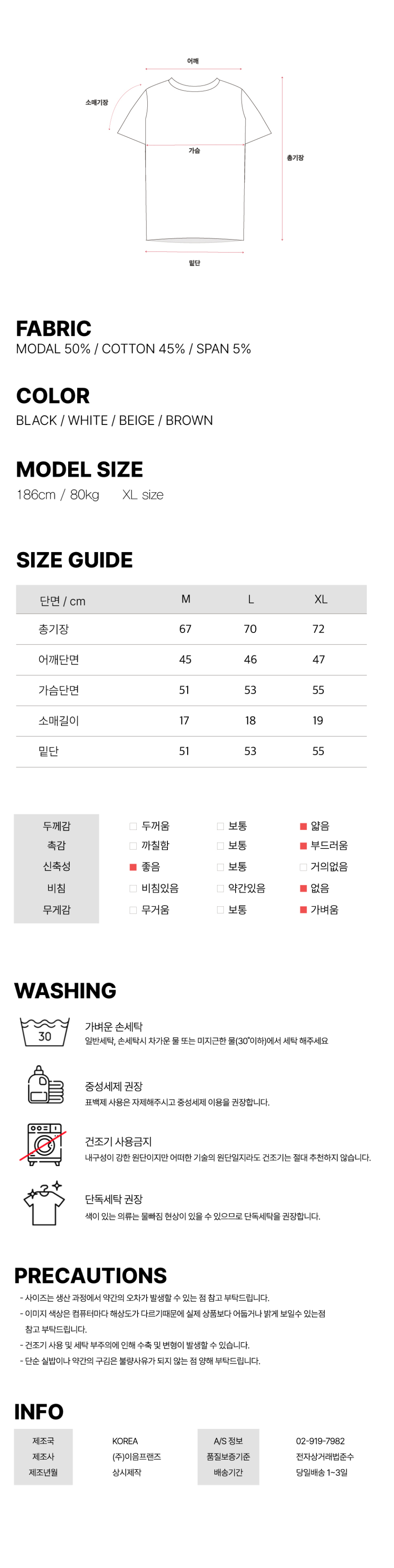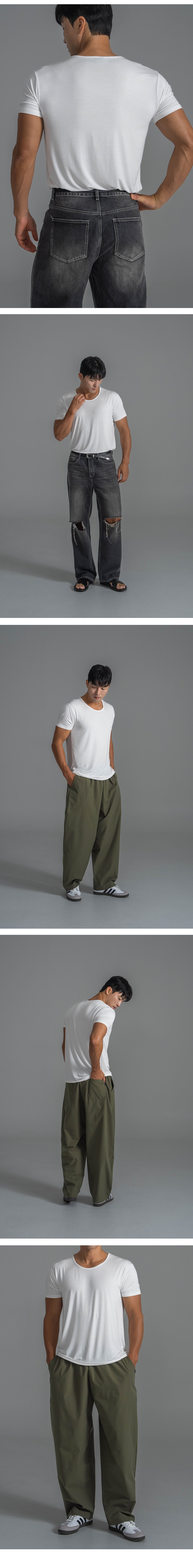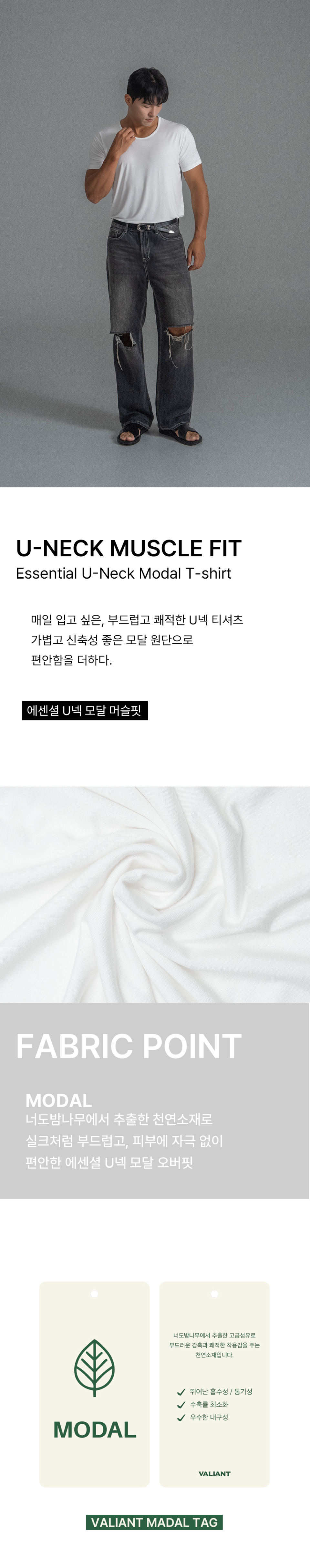 머슬핏 모달 U넥 반팔 티셔츠
