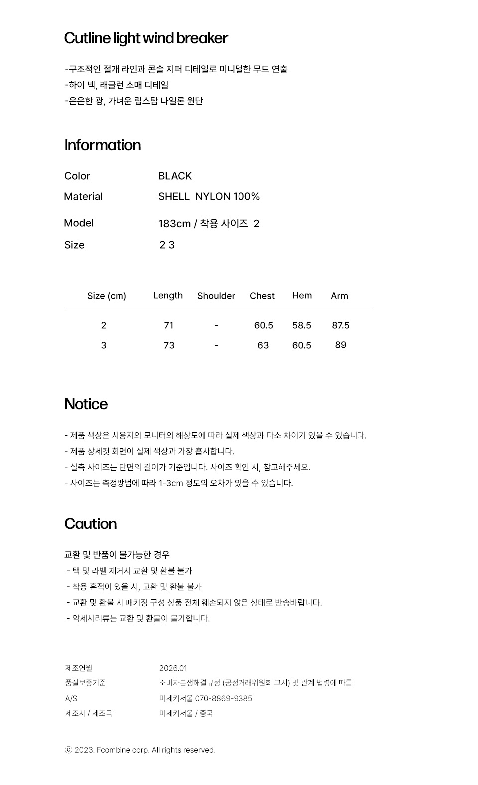 Cutline light wind breaker BLACK