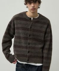 헤어리 스트라이프 크롭 니트 가디건 [브라운]