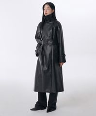 우먼즈 신세틱 레더 트렌치 코트 [블랙]