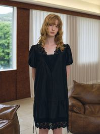 V NECK LACE DRAWSTRING DRESS_BLACK
