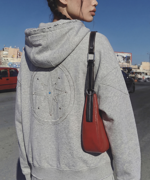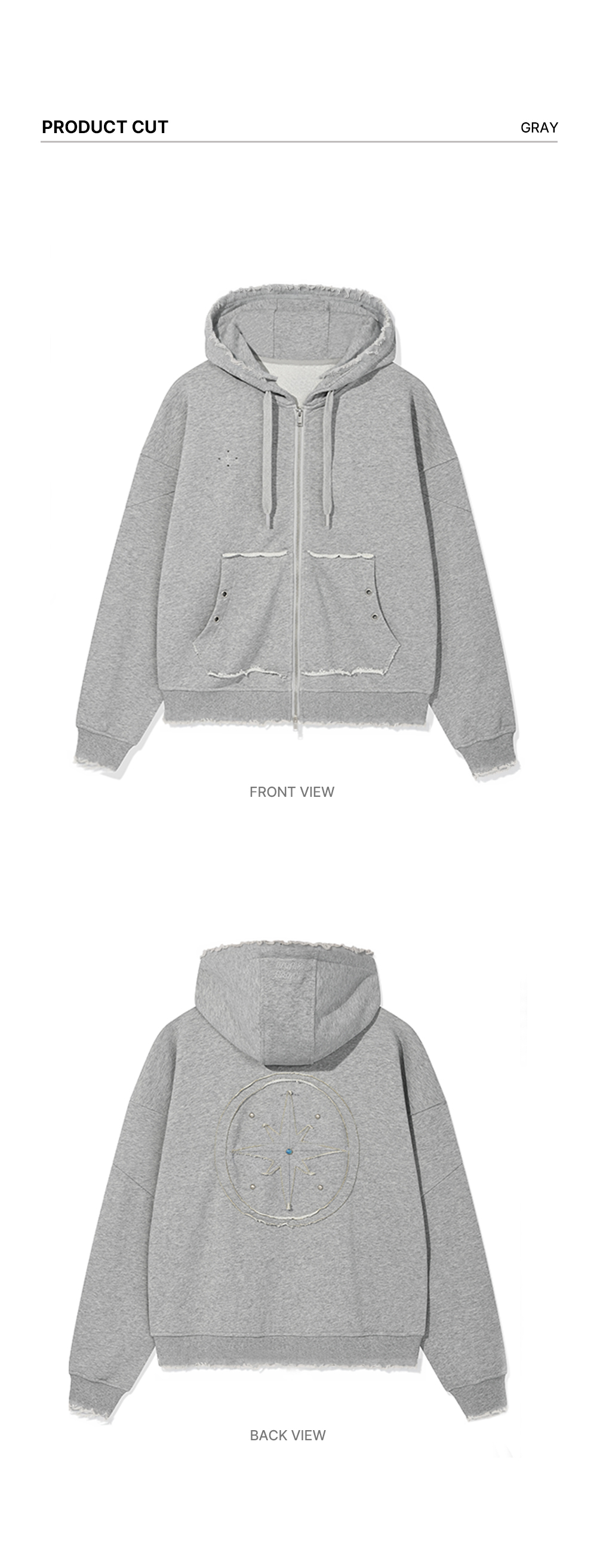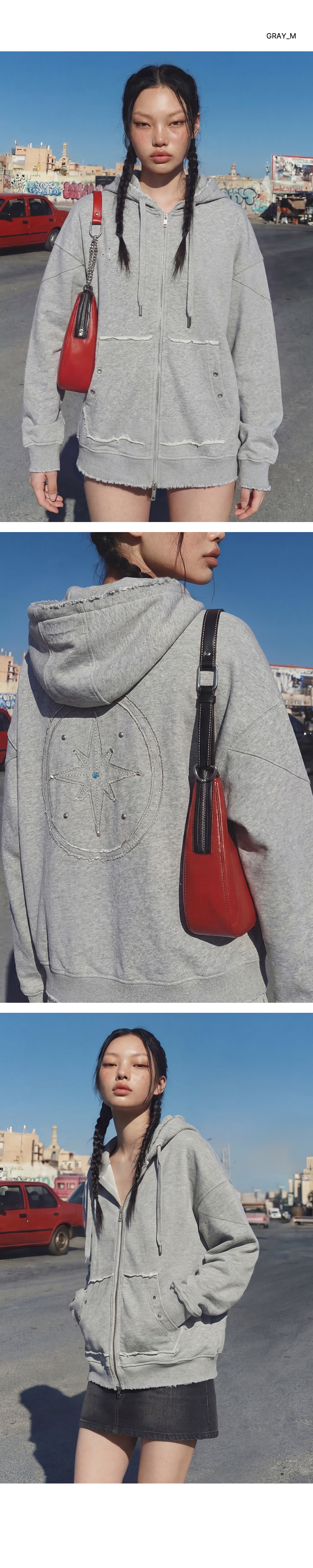 리벳 아플리케 오버핏 후드집업 [그레이]