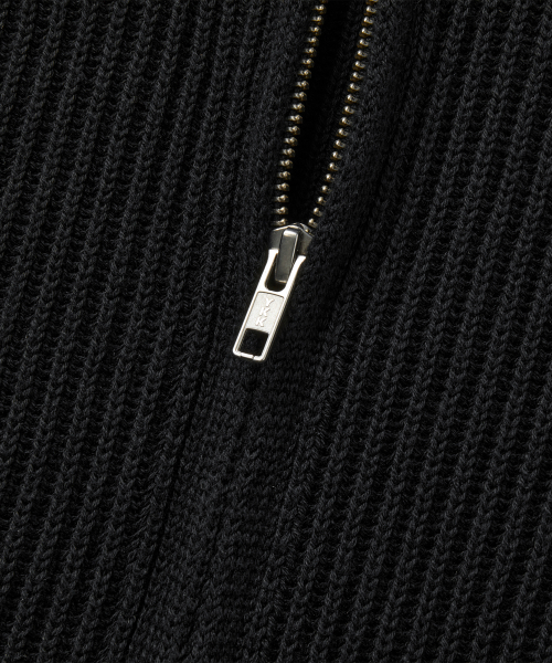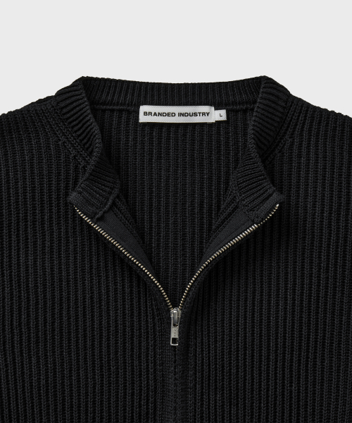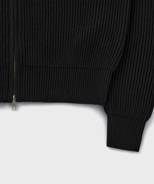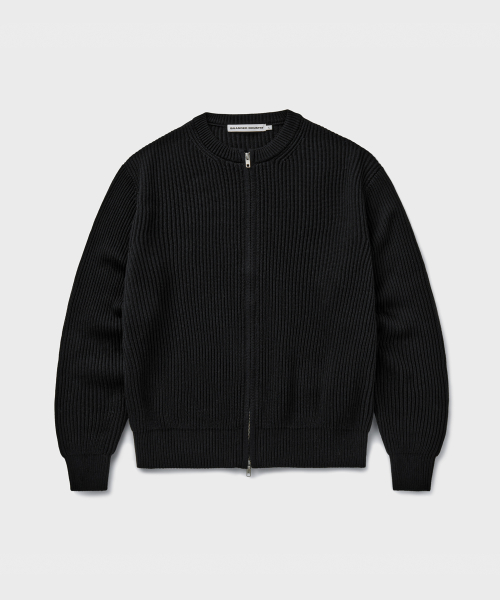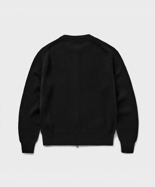 COTTON CREW NECK ZIP-UP CARDIGAN [BLACK]