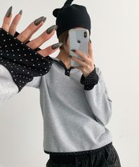 도트 헨리넥 후드티 [멜란지 그레이]