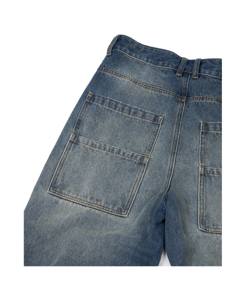 (BASE) TUCK DENIM PANTS (BLUE)