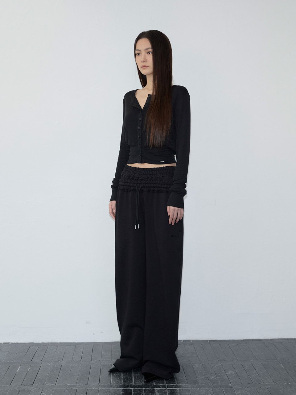 Pintuck Wide Slacks (charcoal)
